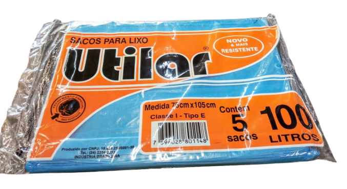 Saco Lixo Utilar Dobrado Azul 100L Com 5