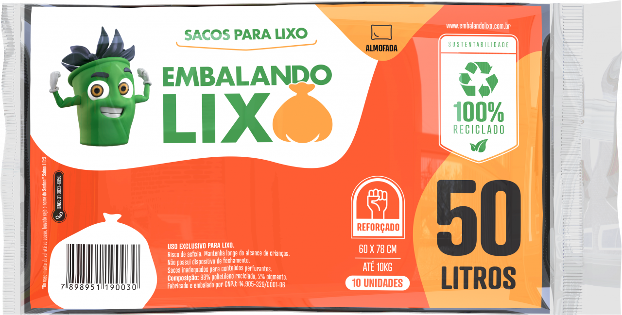 Saco Lixo Potenzzo Almofada 50L Com 10